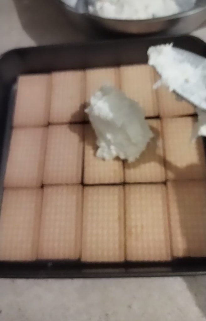 Faites ensuite une autre couche de biscuits dessus, exactement identique à celle faite en dessous.