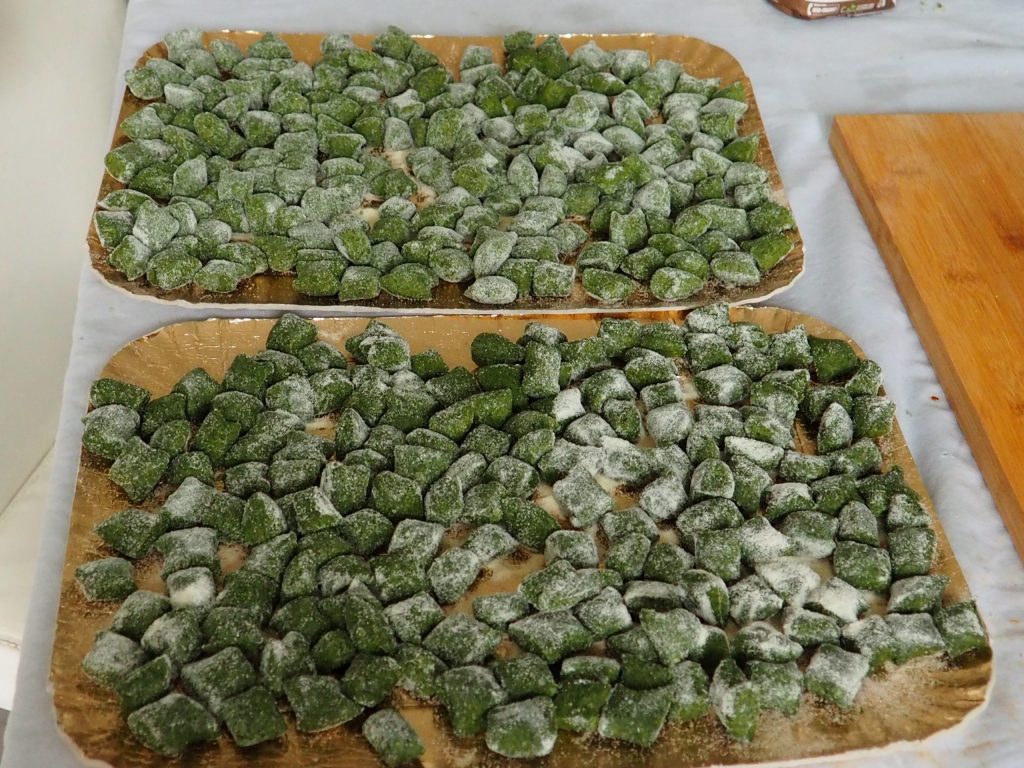 Dans ce type de recettes, il n’est pas simple d’indiquer les doses exactes, il suffit que les épinards soient un peu plus ou un peu moins aqueux et la quantité de farine pourrait varier. Rappelez-vous que la pâte doit être souple, mais facile à travailler, plus trop collante. Aidez-vous toujours avec de la farine pour éviter qu’elle ne colle au plan de travail.