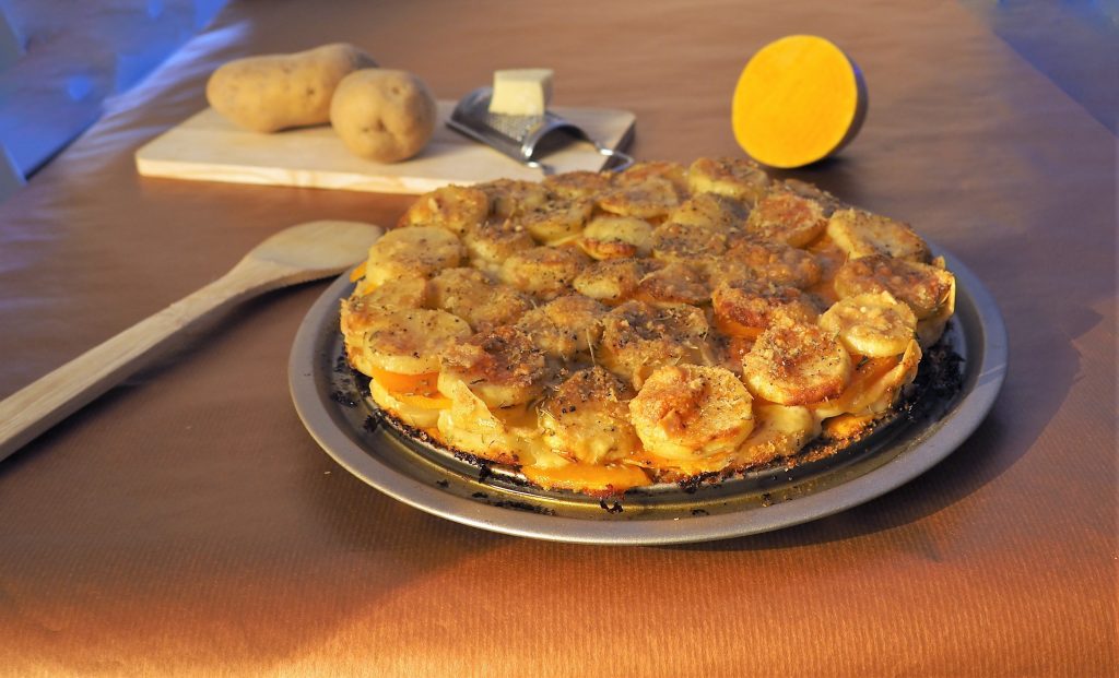 Pour accélérer la cuisson, je vous conseille de blanchir les pommes de terre et les courges avant de préparer le gratin, le temps de cuisson dépend beaucoup de l’épaisseur des légumes.