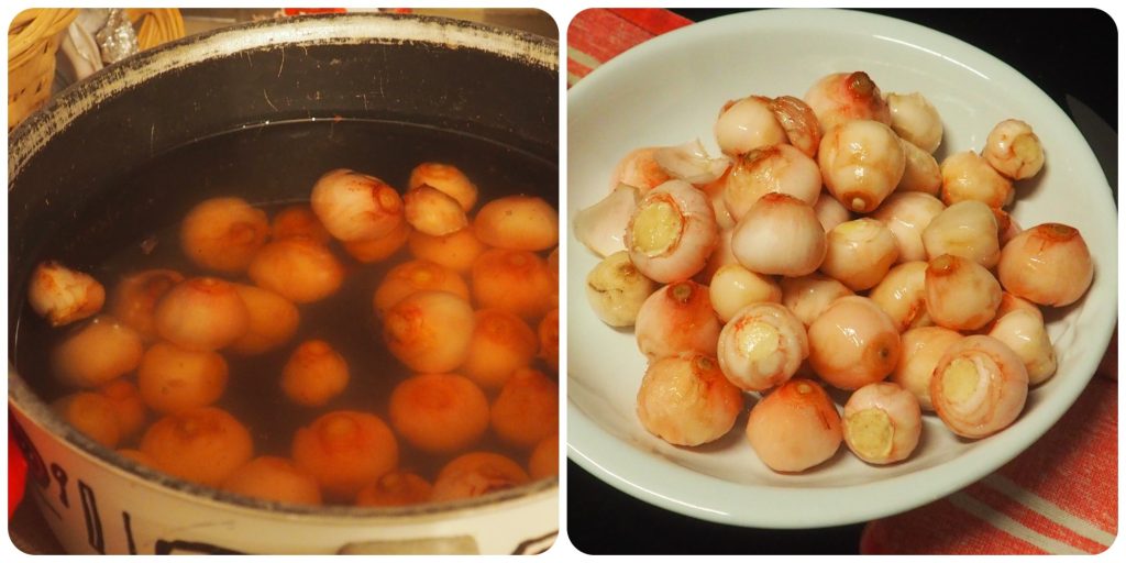 Nettoyez bien les lampascioni de la terre, retirez la partie extérieure si elle est sèche ou abîmée, puis mettez-les dans de l’eau froide pendant quelques heures ou même toute la nuit. Il est préférable de changer l’eau toutes les 3/4 heures, cela vous permettra d’enlever un peu du goût amer qui caractérise ces bulbes. Vous pouvez également éviter cette opération si c’est justement le goût amer qui vous plaît.