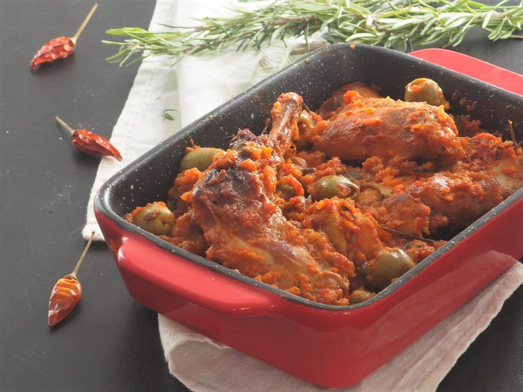 Le Lapin à la chasseur avec des olives et des câpres est un plat principal très savoureux, avec une cuisson lente et à feu doux, je vous garantis qu’il gagne en saveur. Si vous aimez le piquant, je vous conseille d’ajouter une pincée de piment, vous ne pourrez plus vous arrêter de le manger.