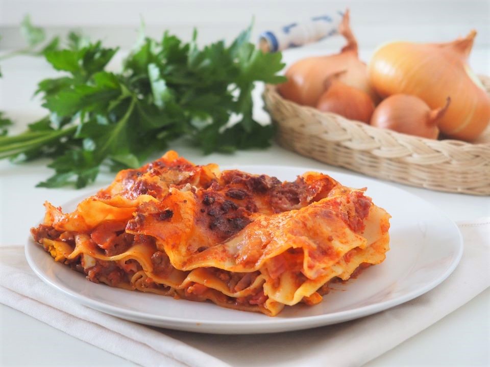Les Lasagnes au ragoût au four sont le plat préféré de ma fille, donc je le prépare assez souvent. Nous l’aimons bien consistant, riche en ingrédients qui le rendent savoureux, évidemment à déguster comme plat unique. Si vous souhaitez préparer la pâte fraîche faite maison cliquez ici, mais utilisez seulement la moitié des doses indiquées dans la recette.