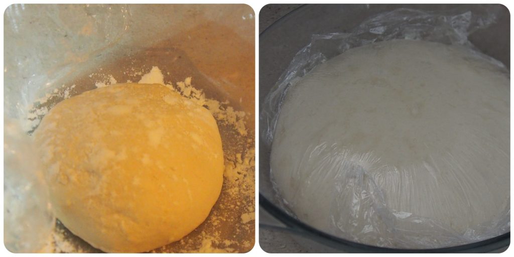 • Prenez la pâte et mettez-la dans un récipient fariné, couvrez-la de film plastique puis d’un torchon propre. Laissez reposer pendant 8/9 heures. Vous pouvez préparer la pâte la veille au soir.