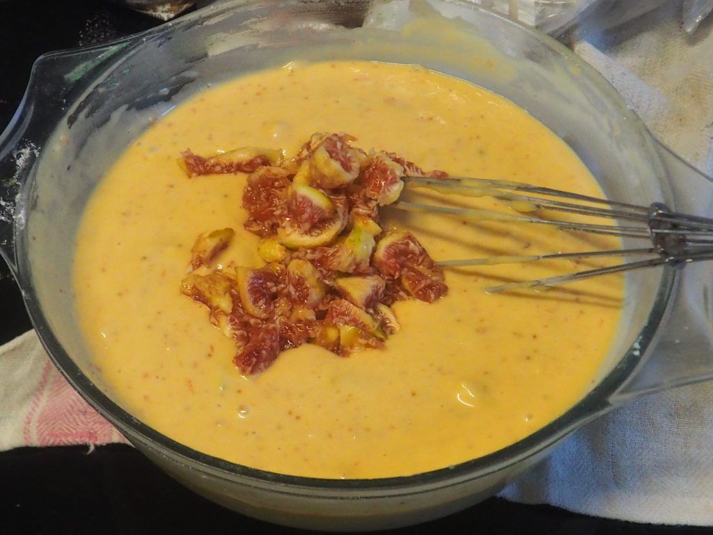 Lavez, épluchez et coupez en petits morceaux les figues (en gardant deux ou trois de côté), mettez-les dans le bol et mélangez le tout.