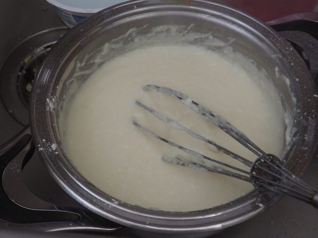 Préparez la béchamel en mettant dans une casserole le beurre avec la farine, une fois qu’ils sont amalgamés, ajoutez le lait, la ricotta, le parmesan, le sel et mélangez avec un fouet pour éliminer tous les grumeaux. Continuez pendant quelques minutes, jusqu’à ce que la sauce devienne légèrement épaisse. Laissez refroidir légèrement.