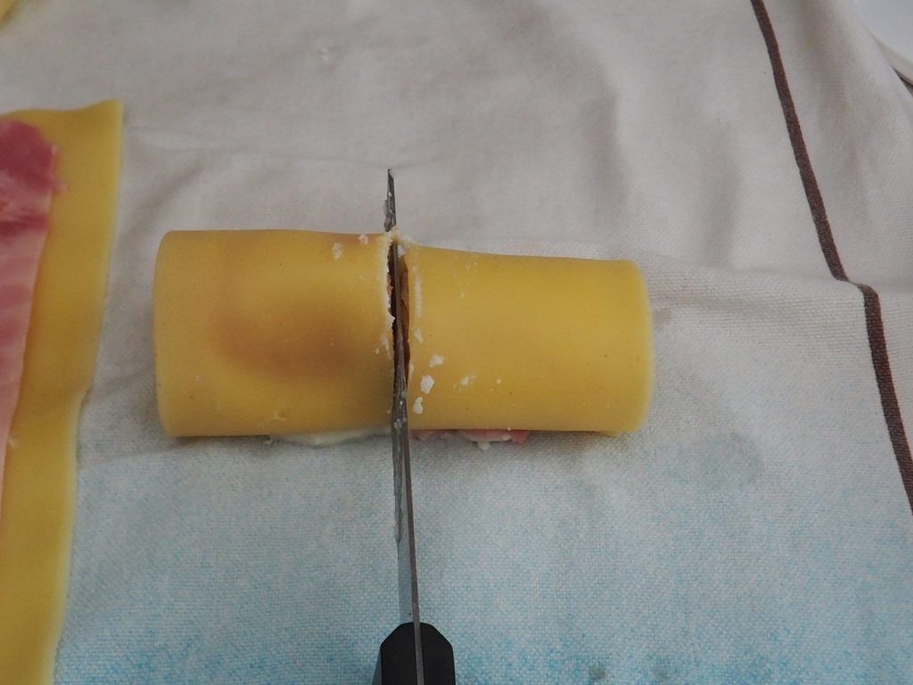 Coupez la lasagne roulée en deux.