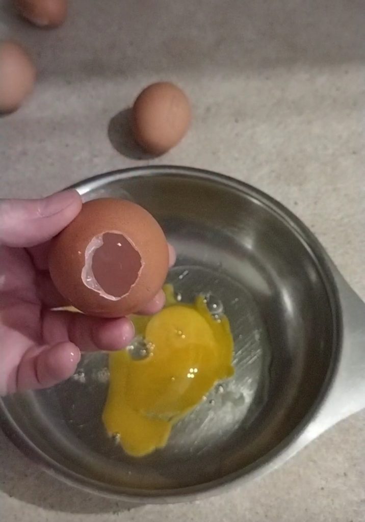 Je vous conseille de préparer les coquilles d’œufs à l’avance, mettez-les de côté chaque fois que vous utilisez des œufs dans une préparation, privilégiez ceux de catégorie XL qui ont aussi la coquille légèrement plus grande.