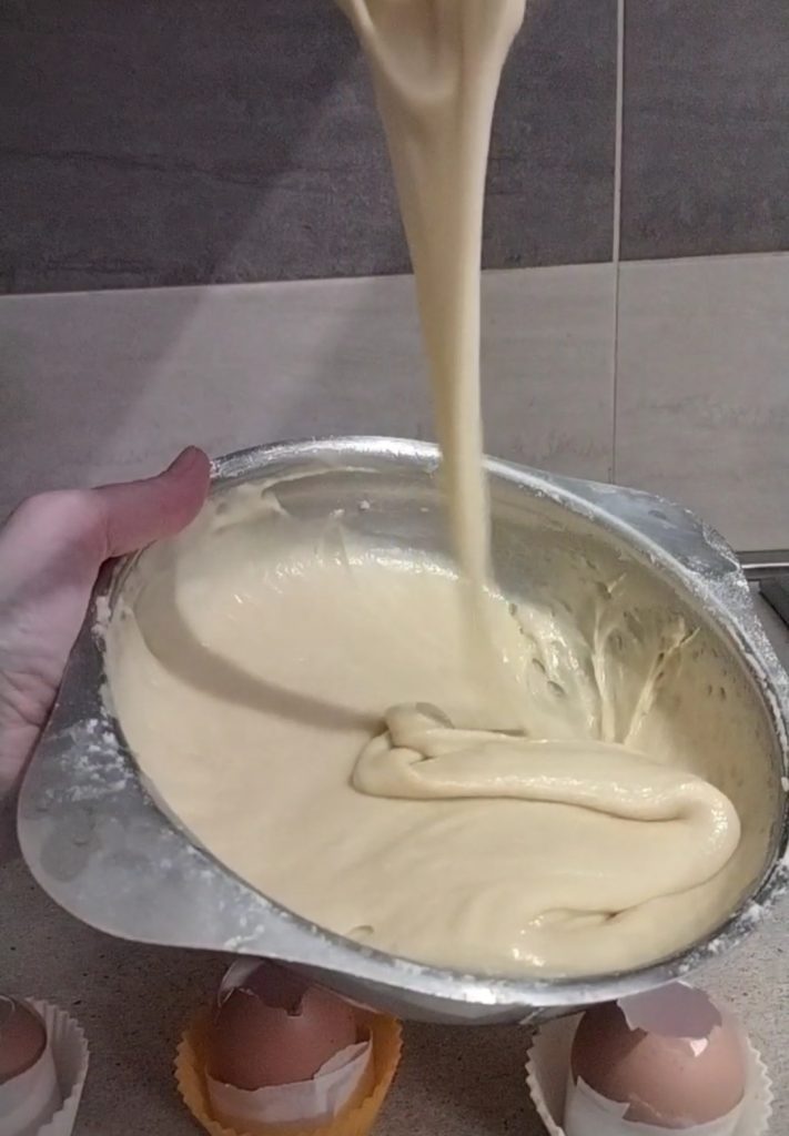 Battez bien avec un fouet, en essayant d’incorporer de l’air, le mélange doit être légèrement mousseux et lisse.