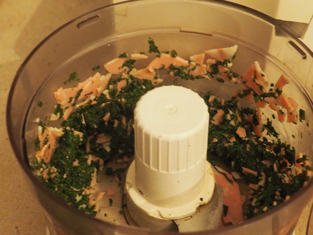 Hachez dans un mixeur les épinards préalablement bouillis, avec le jambon et l’herbe amère.
