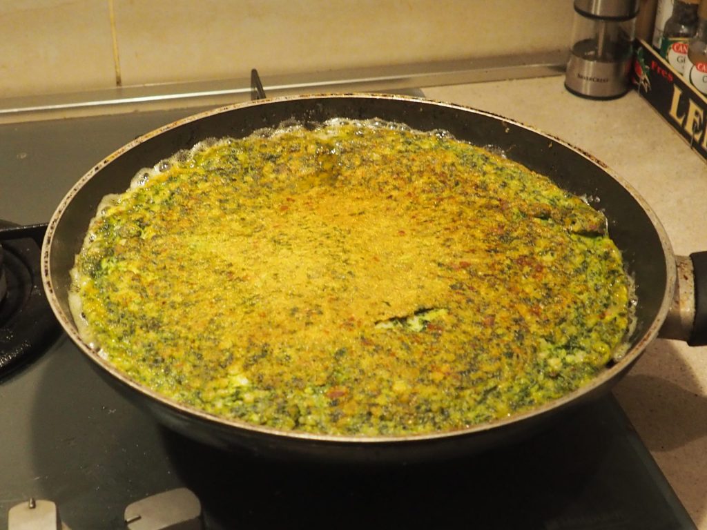 L’herbe amère, dont le nom scientifique est Tanacetum balsamita, peut-être plus connue sous le nom d’Herbe de Saint-Pierre, a les feuilles légèrement allongées et larges, avec des bords dentelés, un léger parfum de menthe/citron et un goût légèrement amer. Dans cette omelette, je n’ai utilisé que deux feuilles, mais si vous aimez son goût, vous pouvez en mettre un peu plus, sans exagérer, sinon elle pourrait être trop amère.
