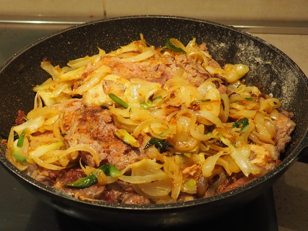 Ou vous pouvez d’abord faire dorer la viande puis ajouter les oignons et les cuire ensemble, comme dans le reel.