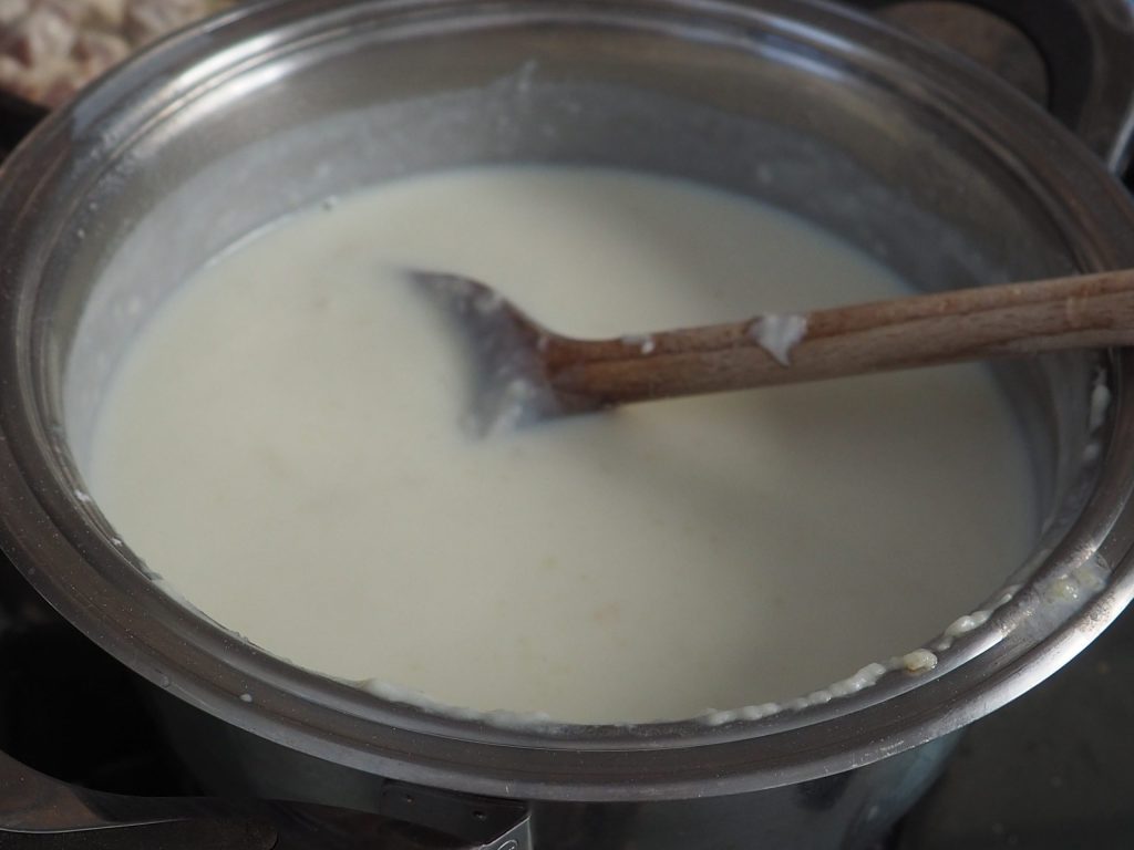 La béchamel sera prête lorsqu’elle commencera à s’épaissir, cela ne prendra que quelques minutes.