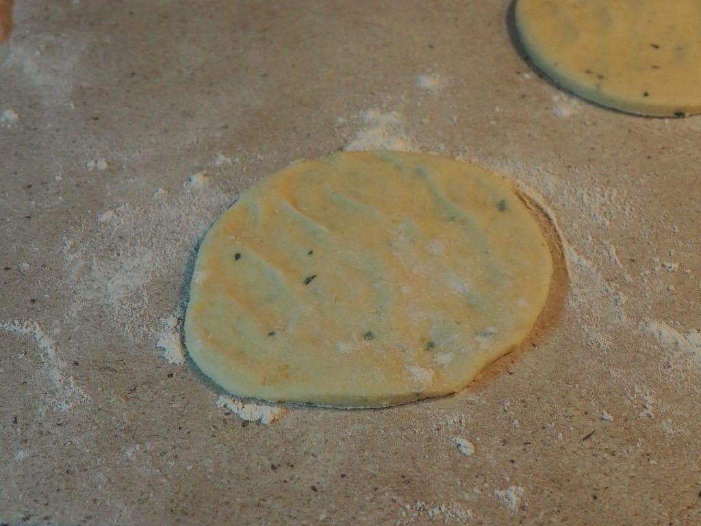 Les doses de farine peuvent varier en fonction de la texture des pommes de terre : la pâte doit être molle mais bien travaillable avec le rouleau.