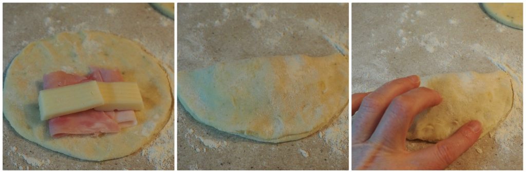 À l’intérieur de chaque panciottino, mettez une demi-tranche de jambon et quelques morceaux de fromage.