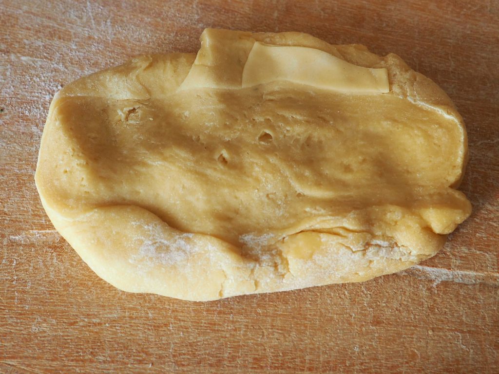 • Pétrissez bien, la pâte sera un peu dure à travailler, étirez-la puis repliez les bords vers l’intérieur.