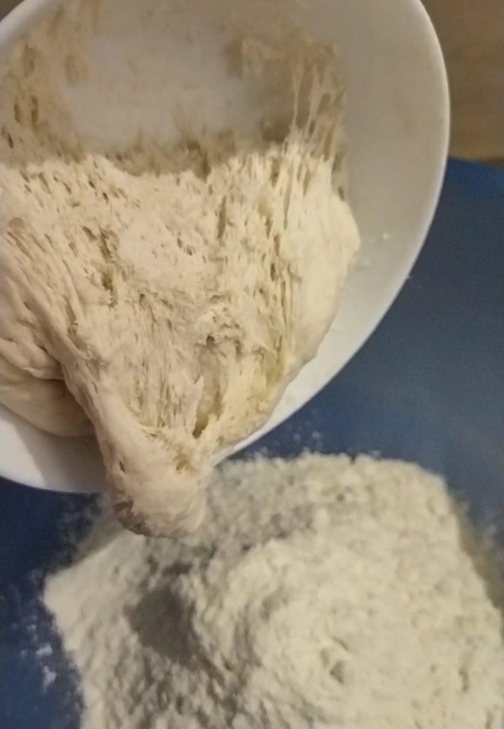 Une fois levé, versez-le sur une surface farinée et pétrissez-le rapidement.