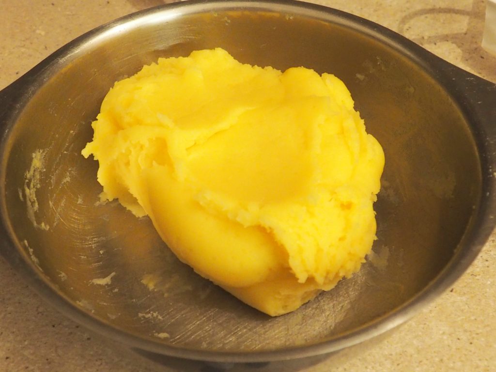Dès que la purée a légèrement refroidi, ajoutez les jaunes d’œufs un à un, en incorporant bien l’un avant d’ajouter l’autre.