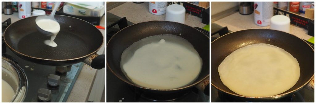 – pour les crêpes, j’ai utilisé une poêle de 18 cm de diamètre et une petite louche contenant environ 40 ml de pâte.