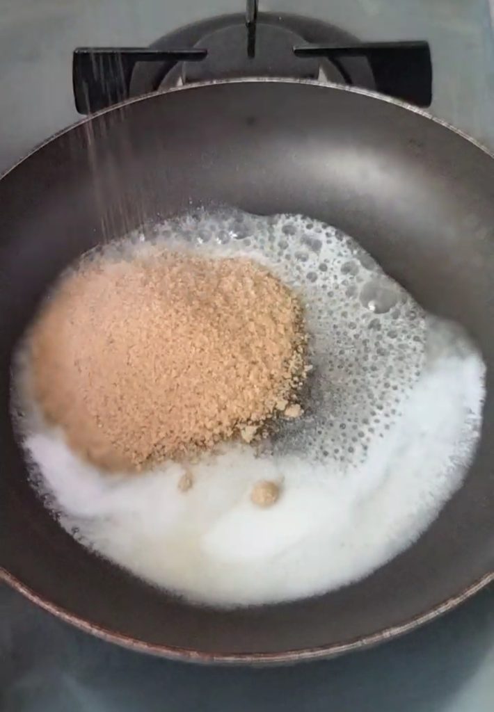 Mettez dans une poêle le beurre, le sucre, la cannelle et le sel, faites fondre à feu moyen, en remuant de temps en temps.