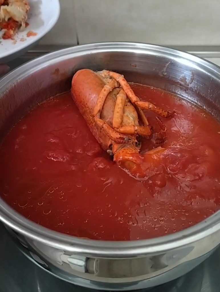 Pour ce plat, j’ai utilisé un homard congelé, que l’on trouve surtout en promotion durant la période de Nouvel An, mais vous pouvez également utiliser des homards frais.
