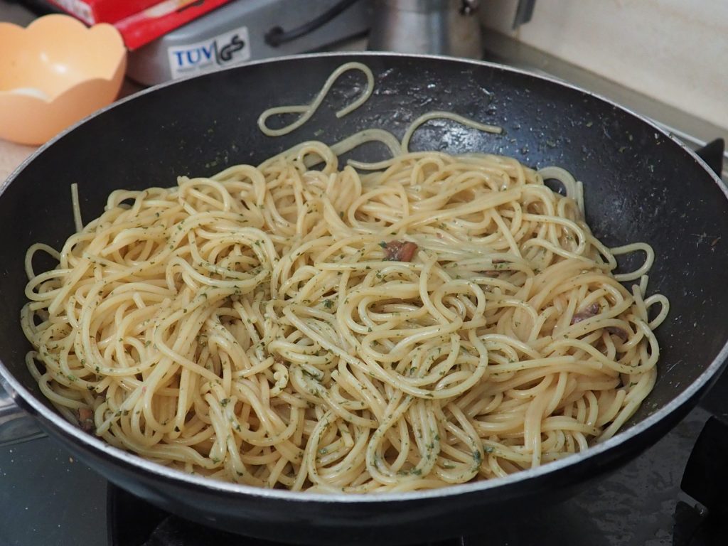 Ajoutez un peu de persil haché et faites sauter les pâtes.