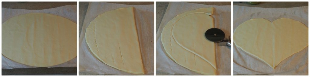 Maintenant, découpez la pâte brisée en forme de cœur, en suivant les indications des photos.