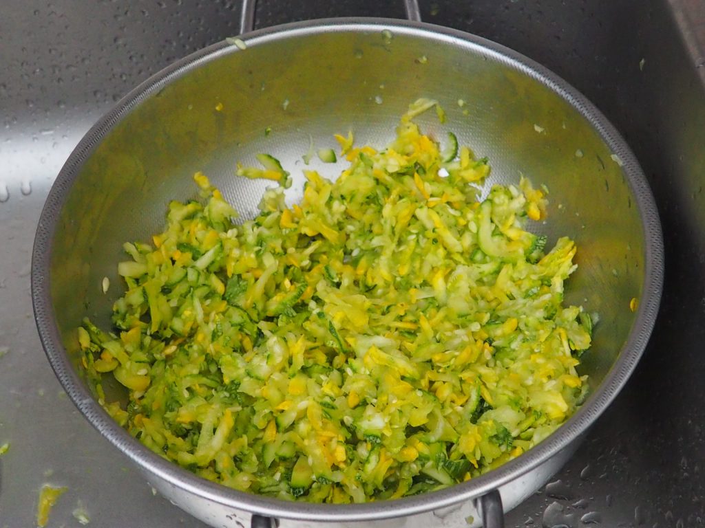 À ce stade, essorez les courgettes que vous avez laissées reposer et ajoutez-les au mélange d’œufs, en mélangeant avec le fouet ou avec une cuillère.