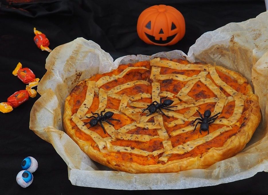 Restons toujours dans le thème d’Halloween et comme j’adore la citrouille, j’ai décidé de la proposer à nouveau dans cette version salée. En effet, grâce à sa polyvalence, les recettes avec ce légume sont vraiment innombrables, en passant des desserts, aux plats principaux, à l’accompagnement, la seule limite est votre imagination. Alors, que pensez-vous de cette Tarte toile d’araignée à la citrouille ? Ah, ne vous inquiétez pas, les fourmis sont fausses ! 🙂
