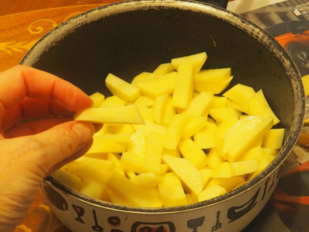 Lavez, épluchez et coupez les pommes de terre en morceaux.