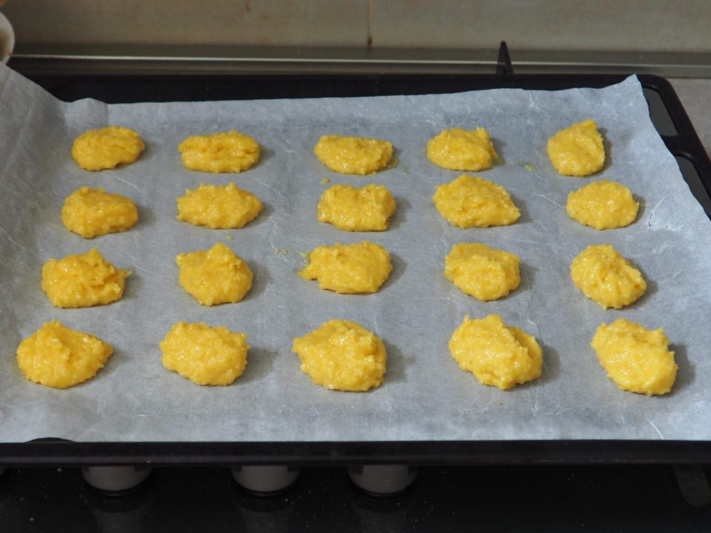 Prélevez environ 18 g de préparation avec une cuillère et placez-la sur une plaque de four recouverte de papier sulfurisé.