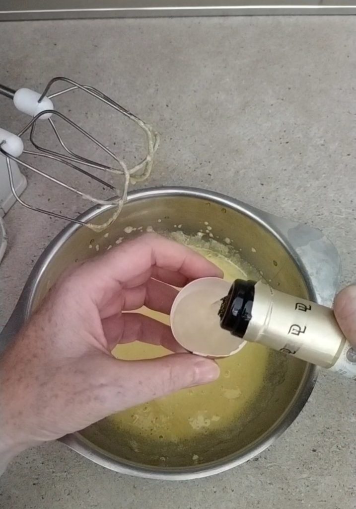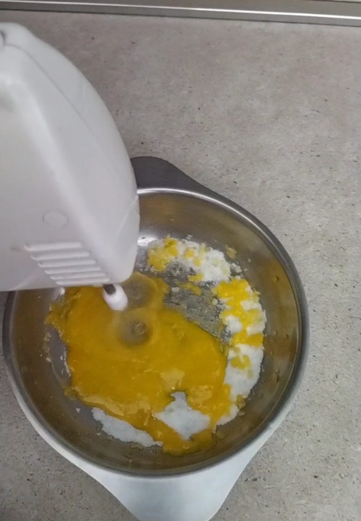 Ajoutez maintenant le moscato, deux demi-coquilles d’œuf correspondant à environ 40 gr.