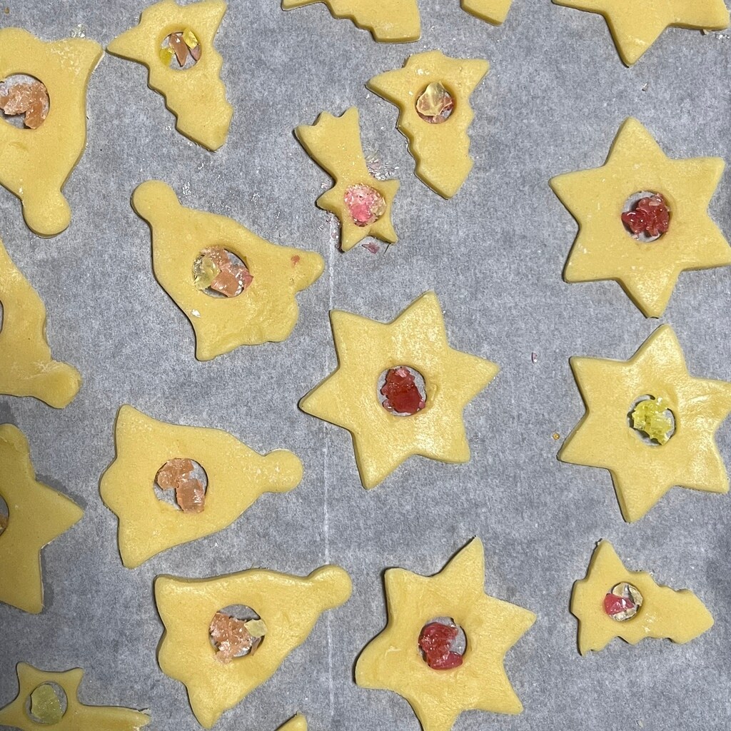 Ces délicieux biscuits sont très simples à préparer, mais grâce aux bonbons durs, ils ont également un aspect très scénique, car en fondant, ils acquièrent l’effet classique de verre coloré.