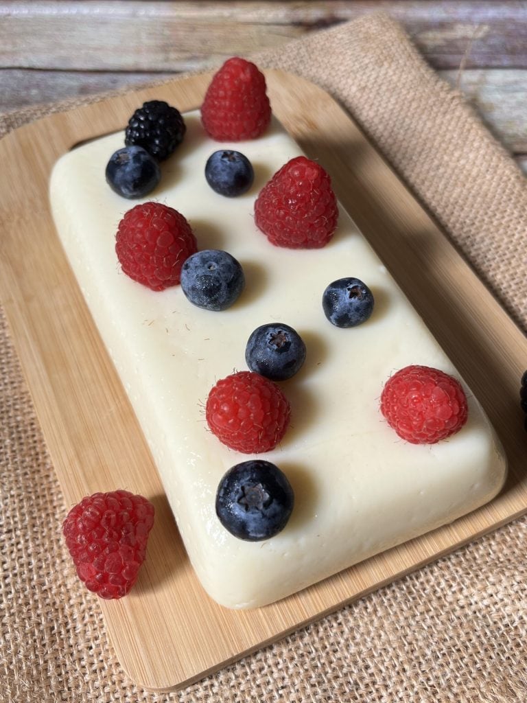 Notre Flan à la vanille sans lactose est prêt. Démoulez et décorez avec des fruits rouges frais.