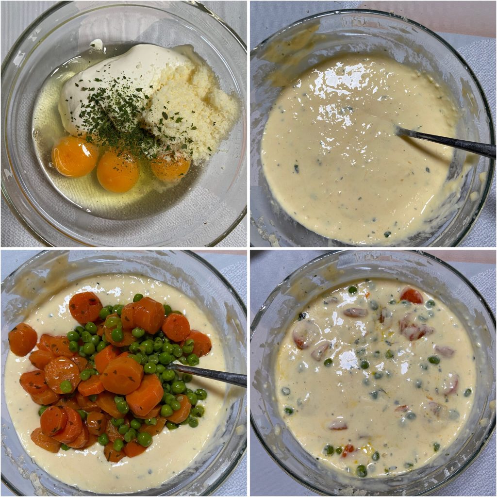 Vous n’aurez besoin que de quelques ingrédients et vous pouvez remplacer les carottes et les petits pois par n’importe quel autre légume cuit restant.