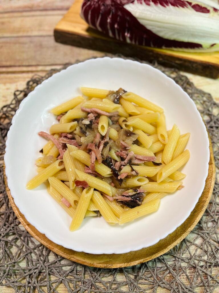 Les penne avec speck et radicchio doivent être dégustées IMMÉDIATEMENT, dès qu’elles sont cuites !
