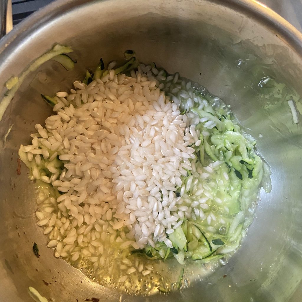 Ajoutez le riz Carnaroli et faites-le griller pendant quelques minutes, en remuant constamment.