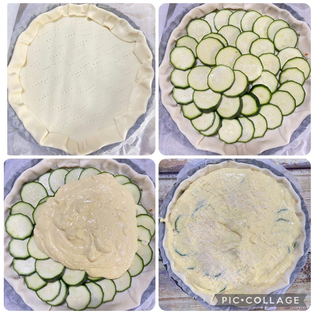 Disposer les courgettes en rosace et répartir par-dessus le mélange d’œufs et ricotta.