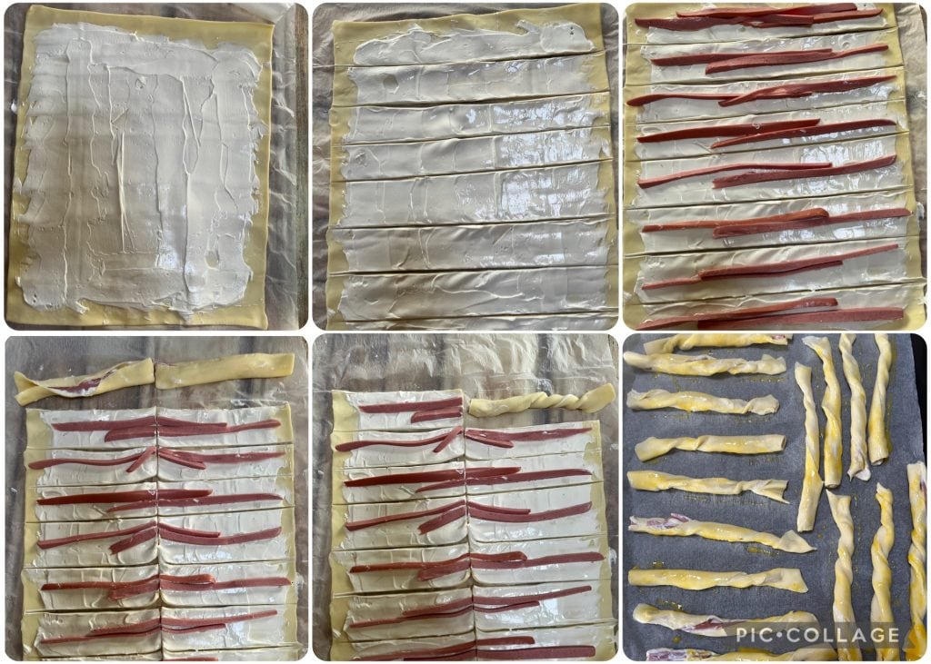 Nos Torsades de pâte feuilletée avec saucisses sont prêtes.