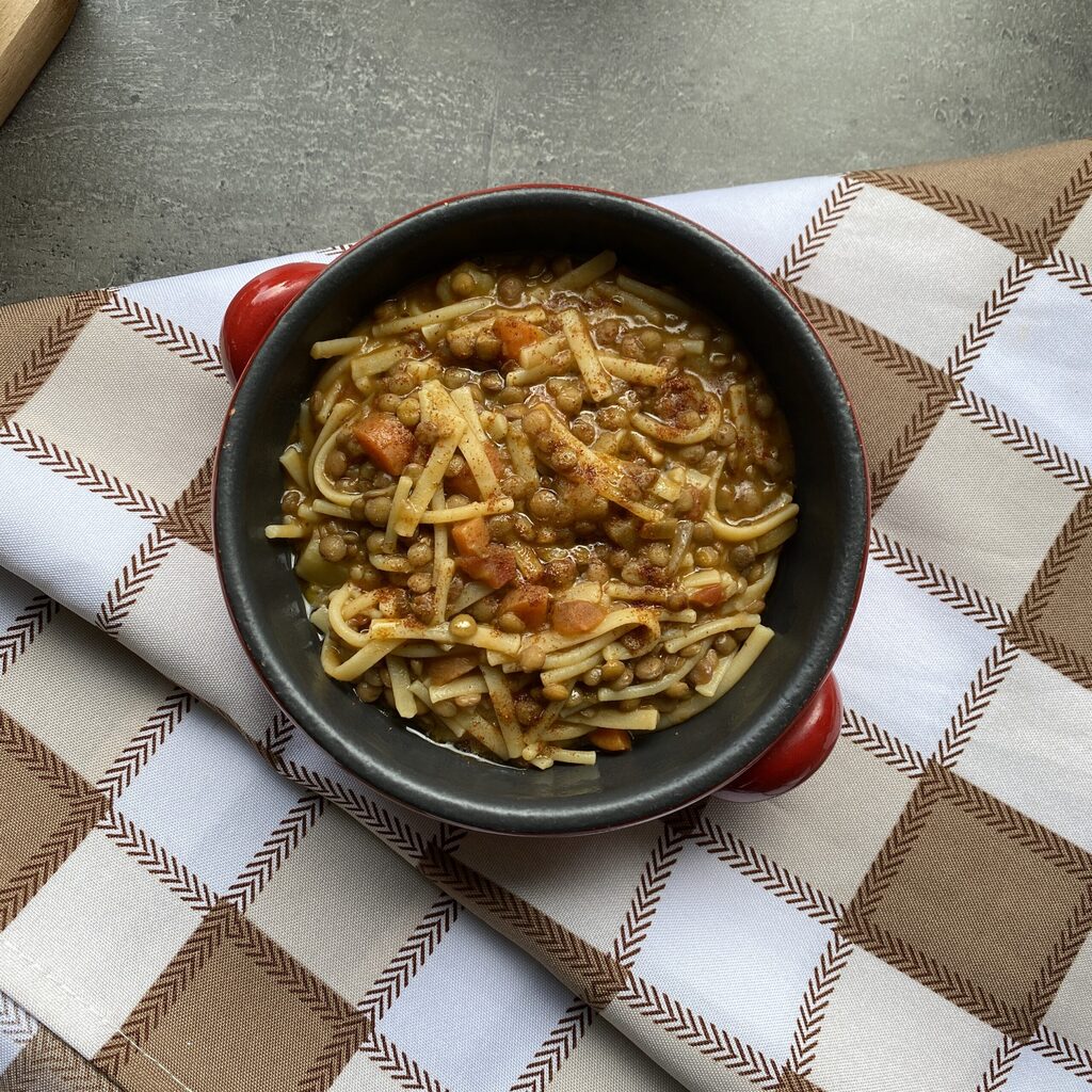 Je suis absolument certain que les pâtes aux lentilles sont sans aucun doute l’un de mes plats de soupe préférés ! J’adore les manger avec des pâtes en hiver quand il fait froid, mais je ne peux pas m’en passer même en été ! Je sais, je suis masochiste, mais face à ces plaisirs, je fais comme si de rien n’était !