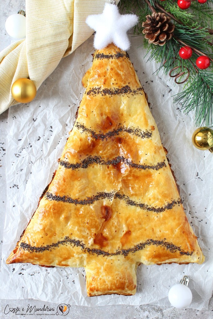 – L’arbre en pâte feuilletée avec speck, pommes et Asiago sera parfait à mettre sur la table pendant les fêtes de Noël, comme apéritif à grignoter avant les plats principaux. Comme je vous l’ai déjà dit, en effet, il est délicieux aussi bien tiède qu’à température ambiante.