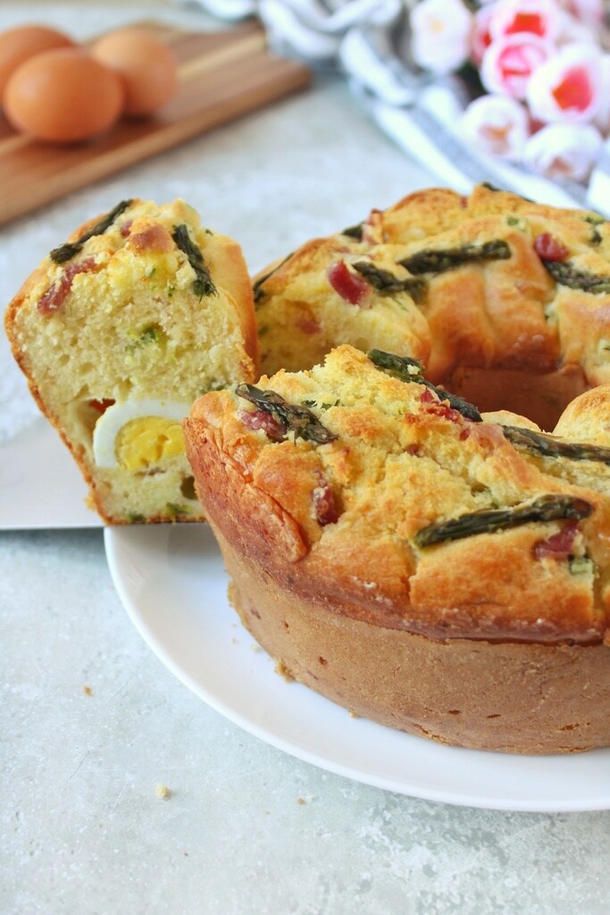 Ce cake salé avec asperges et lardons est tout simplement fabuleux. Haut et super savoureux, il est d’une douceur vraiment unique grâce au yaourt dans la pâte, qui lui confère une texture spéciale.
