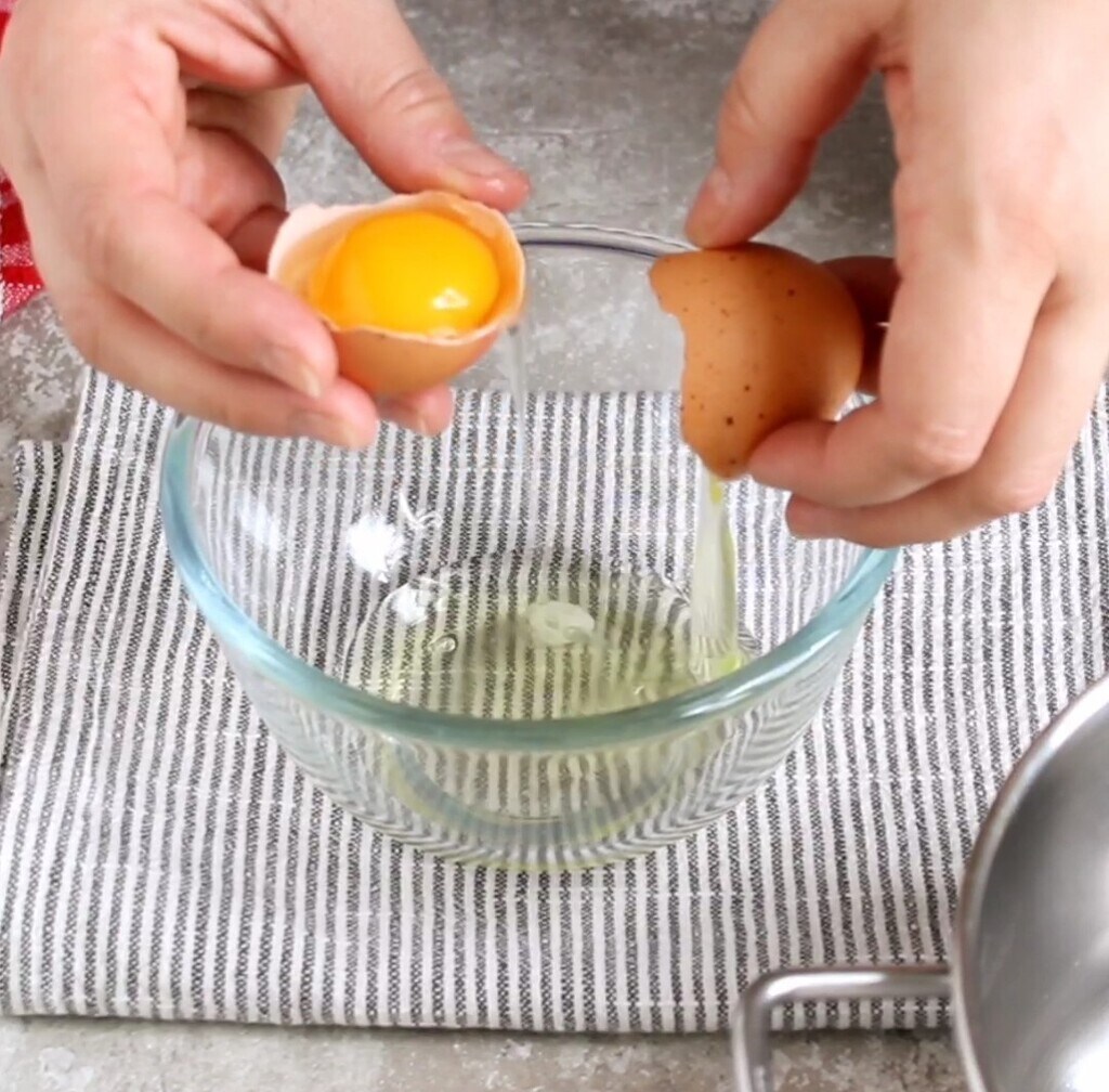 Séparez les jaunes d’œufs des blancs et versez-les dans une casserole assez grande, qui sera celle que vous mettrez sur le feu.