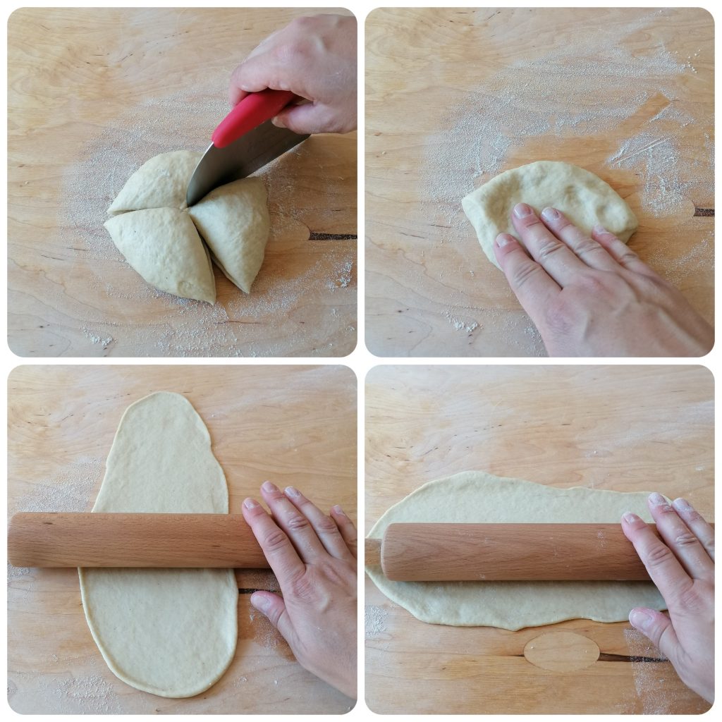 Transférez le tout sur la plaque du four, espacez bien les roulés entre eux et badigeonnez-les avec un jaune d’œuf battu avec une goutte de lait.