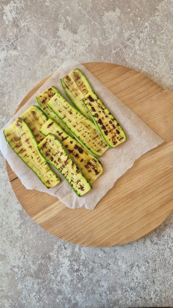 Une fois les courgettes grillées, étalez-les sur un papier absorbant pour éliminer toute eau de végétation résiduelle.