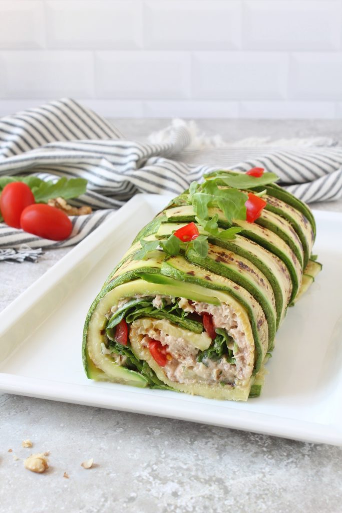 Je vous le propose farci de thon, roquette et tomates cerises, mais vous pouvez en créer d’innombrables variantes selon votre goût. Vous pouvez même remplacer les courgettes par des aubergines et ce sera toujours un succès!