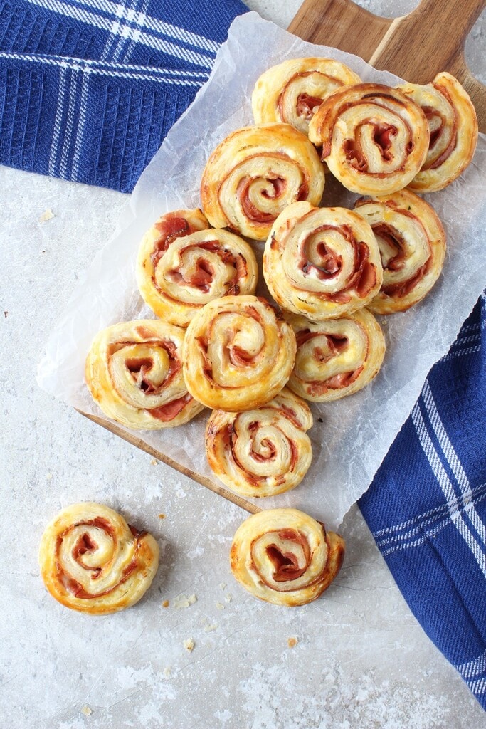 Les roulés de pâte feuilletée à la ricotta et jambon cuit sont une idée facile et très rapide à servir lors d’un apéritif en famille ou entre amis, ou sur les tables des fêtes.