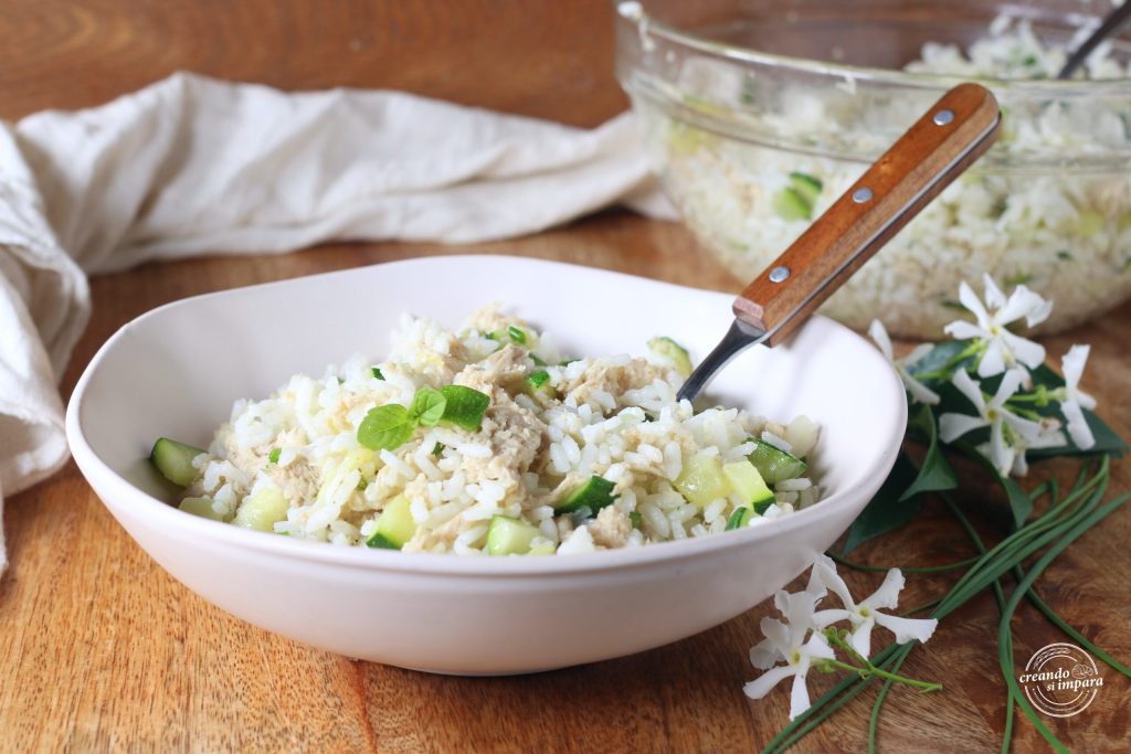 Ajoutez au riz les courgettes, le thon (je préfère végétalien), le zeste de citron râpé et de la ciboulette. Mélangez et laissez reposer quelques heures avant de servir.