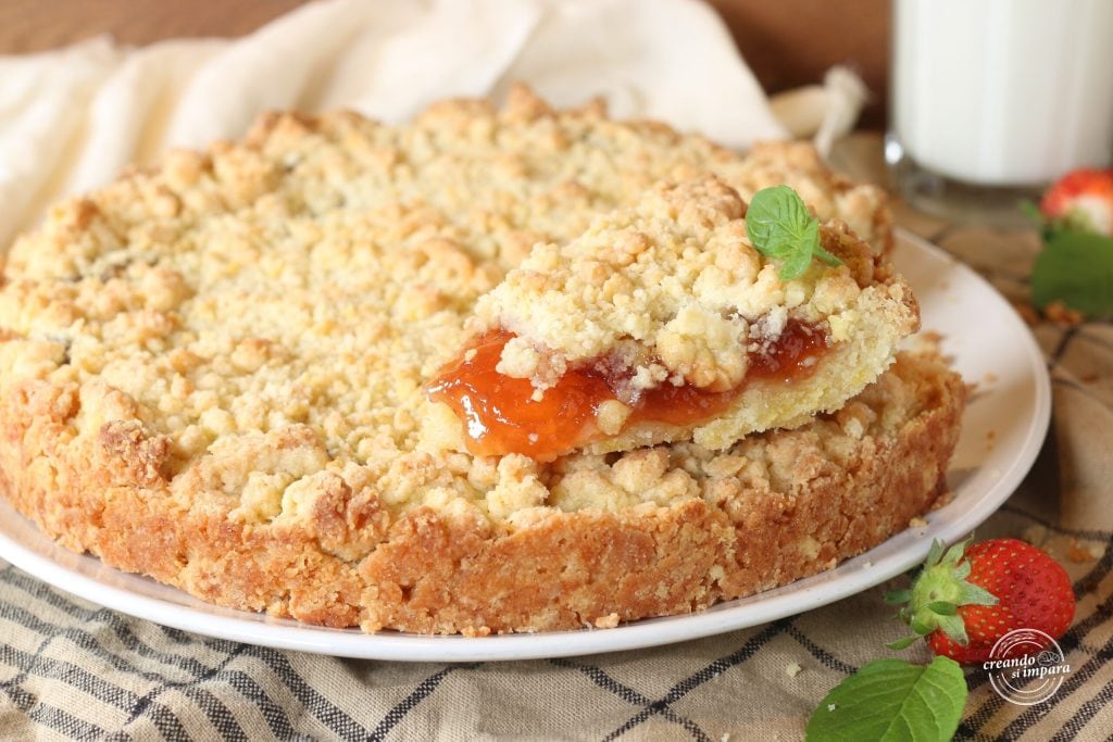 Sbriciolée à la confiture, un dessert qui se prépare très rapidement grâce à la pâte sablée qui est laissée en grosses miettes pour la base et la couverture, et qui ne nécessite même pas de rouleau à pâtisserie. Un dessert croquant et énergétique, parfait pour commencer la journée ou pour un goûter irrésistible, à personnaliser avec votre confiture préférée. Si vous cherchez une garniture plus gourmande, vous pouvez essayer la sbriciolée à la crème de pistache.