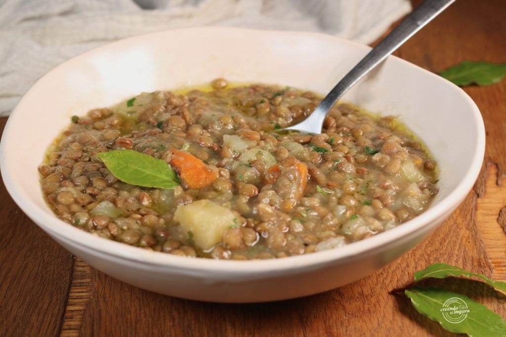 Vive les soupes. Quand il fait froid, elles sont un remède pour le corps et l’âme. Elles sont nutritives, économiques, faciles à préparer et on peut aussi les préparer à l’avance et les réchauffer au dernier moment. Cette fois, j’ai préparé la recette de la soupe de lentilles et pommes de terre, enveloppante et entièrement végétale, tout comme la délicieuse soupe de pois chiches. Il ne nous reste plus qu’à nous mettre au travail et préparer ensemble la soupe de lentilles et pommes de terre.