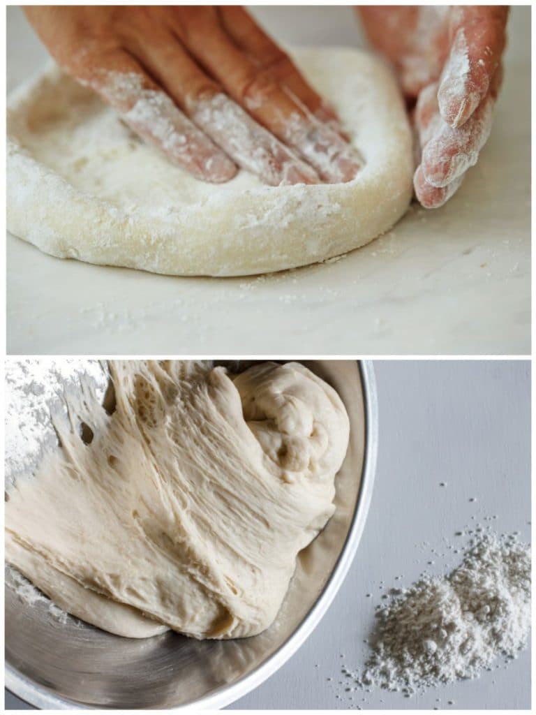 Faisons dissoudre la levure dans un peu de lait tiède, et laissons-la se réhydrater pendant environ 15 minutes. Sur un plan de travail avec la farine, faisons une fontaine, ou mettez le tout dans le robot de cuisine et ajoutons la levure réhydratée, ajoutons le vinaigre, le sel et une cuillère à soupe de saindoux (si vous le souhaitez), l’eau et pétrissons le mélange jusqu’à obtenir une pâte souple. Une fois prête, laissons-la reposer environ 90 minutes, dans un saladier couvert d’un linge.